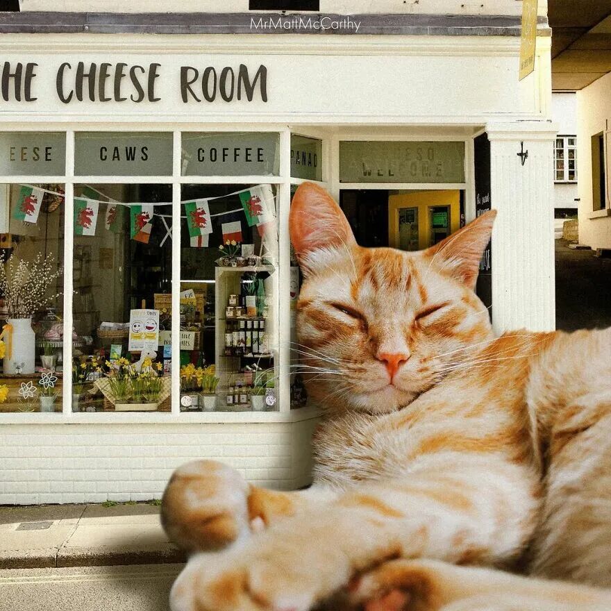 Matt McCarthy,来自美国北卡罗来纳州的拼贴艺术家,利用PS数字技术将现实场景与巨大化的猫咪进行拼接编辑,打造出超现实艺术。