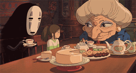 厨房是多么安心的地方!热气腾腾的香味,卸下一天的疲惫。电影中,千寻、无脸男他们最后来到了钱婆婆的家中,并受邀共进晚餐。