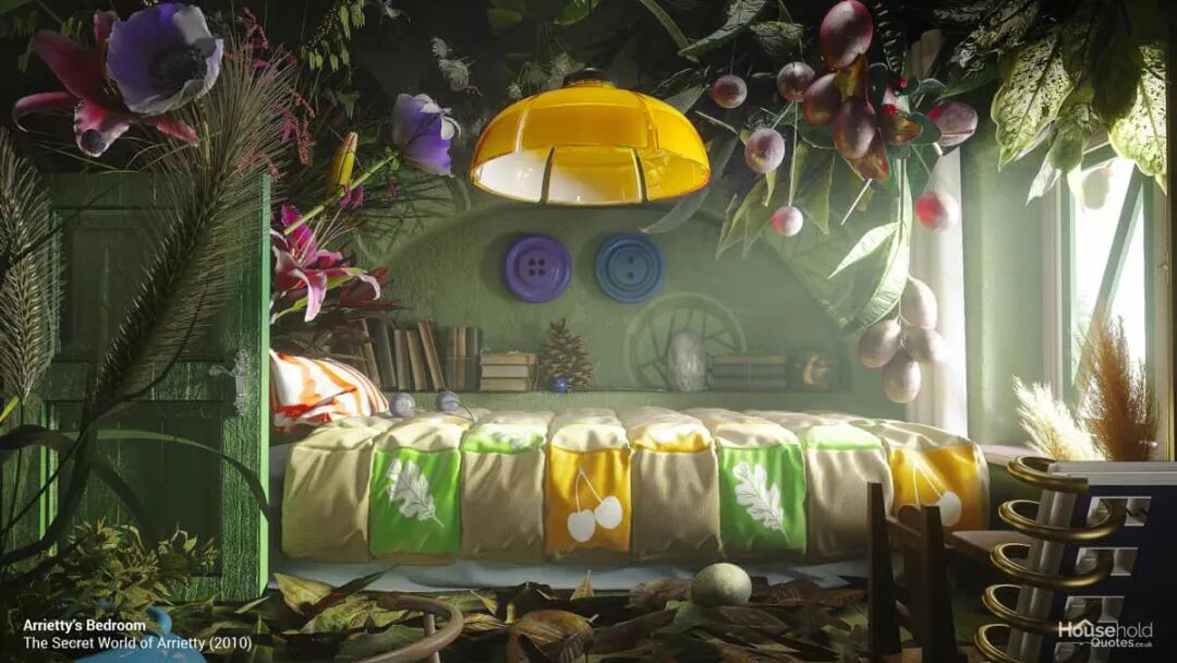 《借东西的小人阿莉埃蒂》基于“小人物”经典之作——玛丽·诺顿的原著《借东西的小人》。阿莉埃蒂的卧室可能看起来很乱,但她将其视为“自己的小花园”。