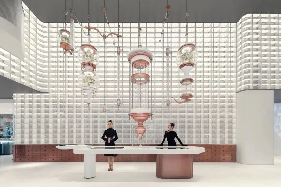 花西子「隐园」全球首家线下旗舰店,立品利用其擅长的「体验场景」设计手法进行体验规划,负责空间、互动装置及整体陈列道具的设计,与花西子多个部门形成共创团队,围绕品牌基因里的东方文化属性,在空间中实现新零售与东方美学核心内容——“形”与“韵”结合的创新表达。