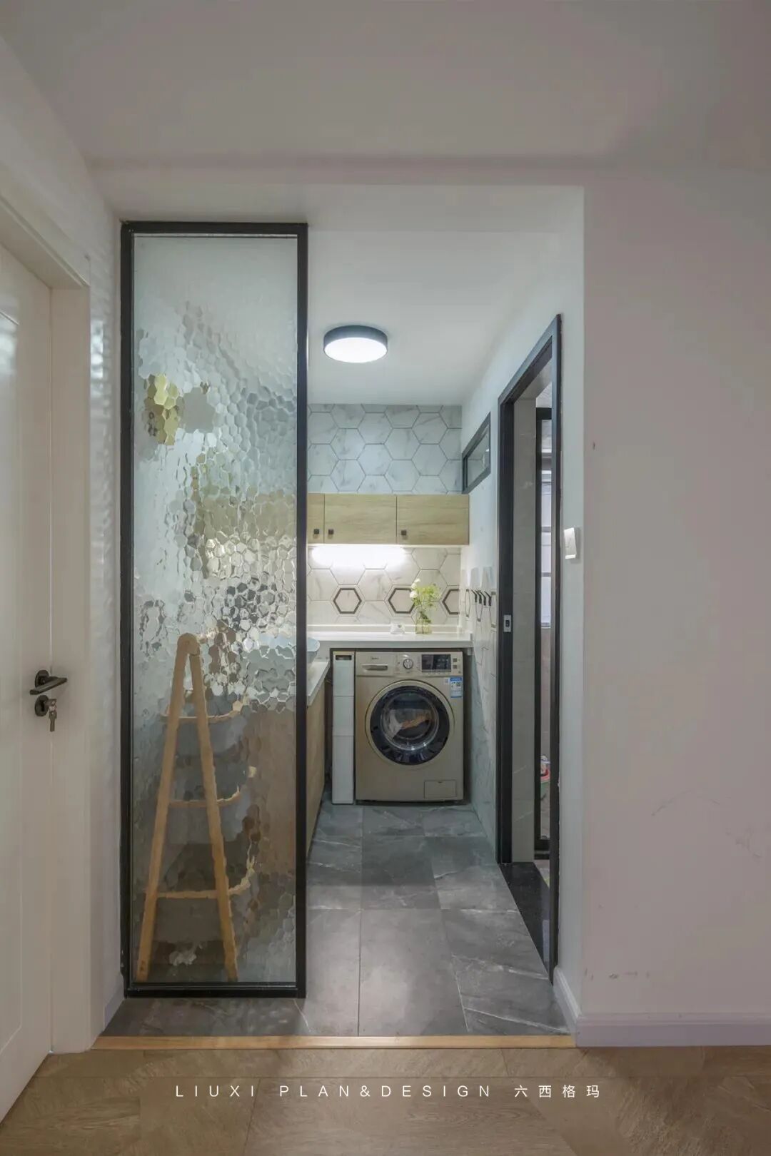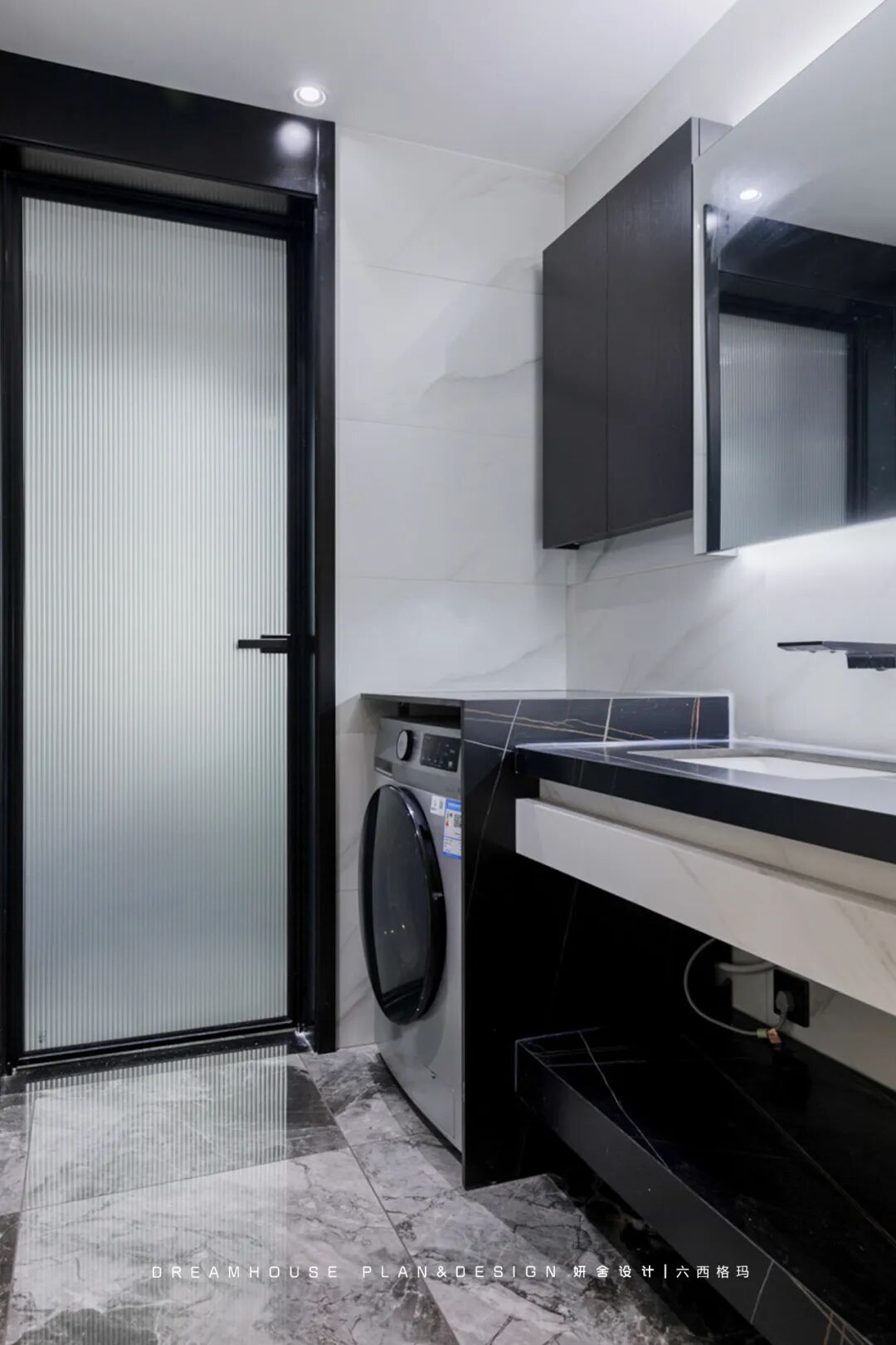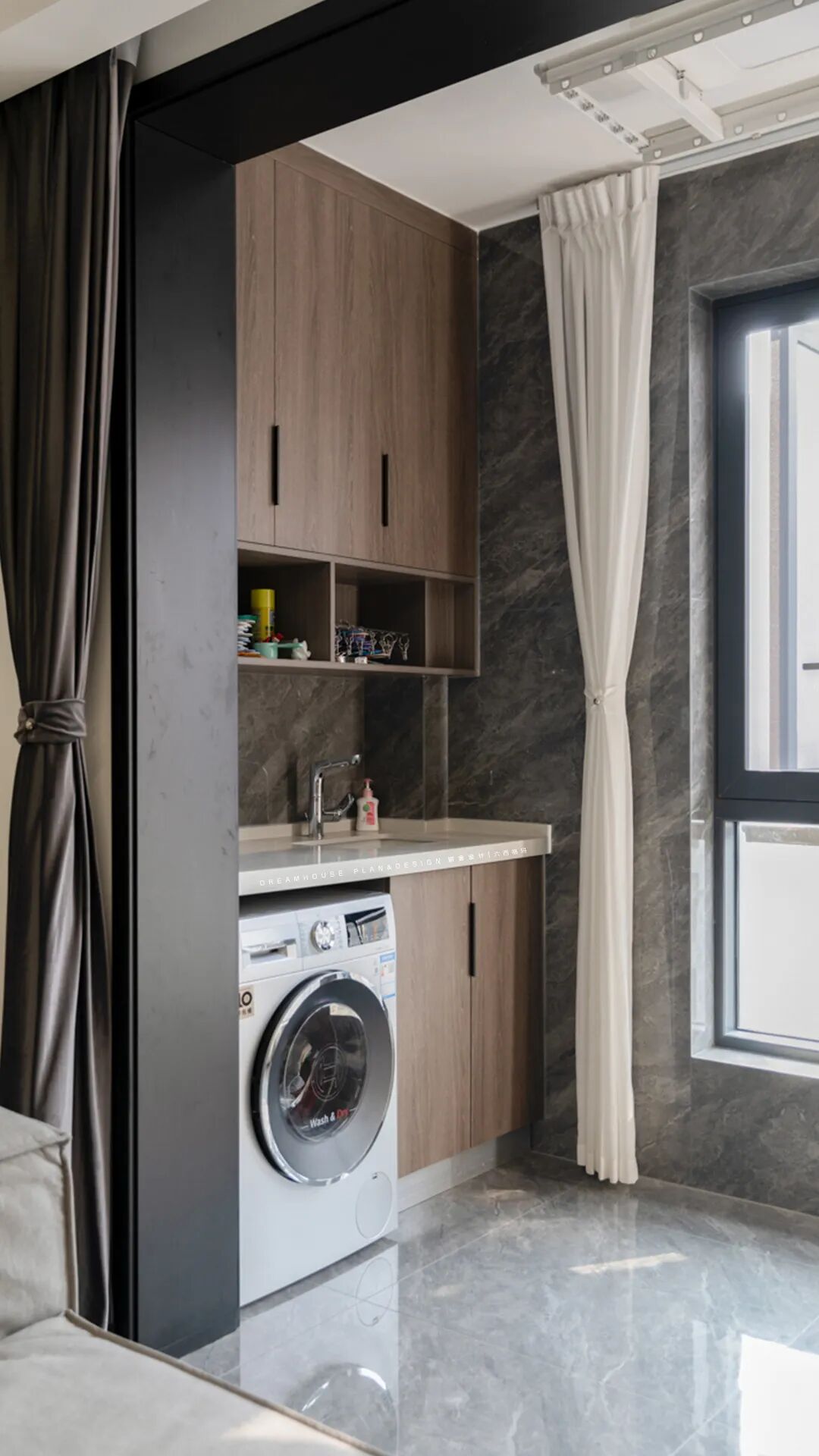 对于像住在大平层、别墅这种大house的业主,直接在家里做个家务间就行了。洗衣机放这里,空间宽敞,也无需考虑噪音的问题。