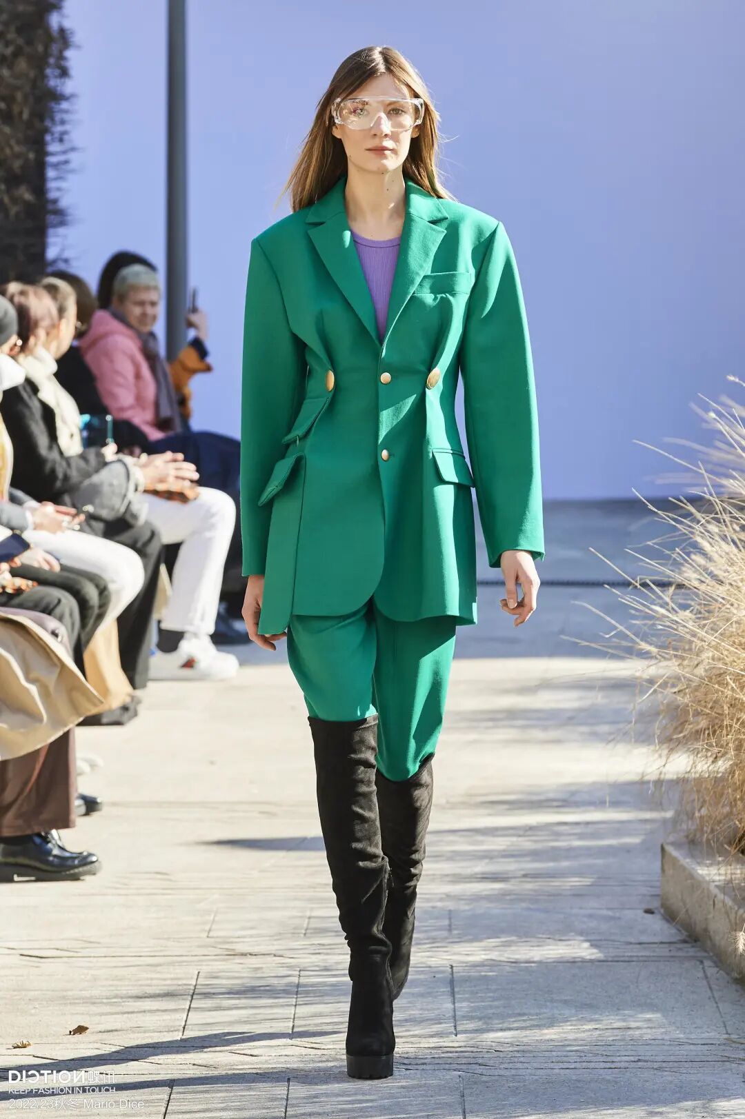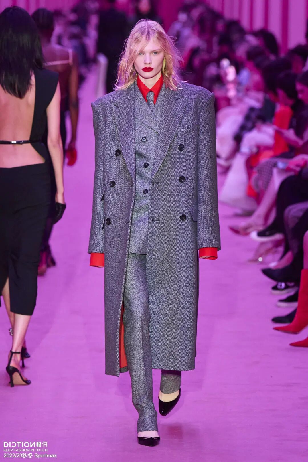 无形设计的西装通常具有中性气质,宽松大版型更加体现西装的职业属性,配合裙装或裤装都能塑造强势气场,是非常具有实用性的职业装束。