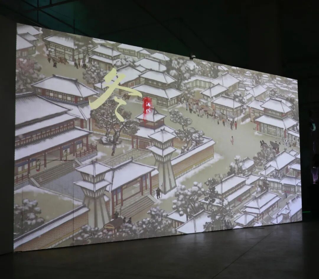 集南北山水于一体的《千里江山图》,是中国青绿山水画的巅峰之作。《云游江山》是与《千里江山图》的跨时空艺术对话,也是对这一巨作的数字化当代转译。从解读原画层层叠加的繁复绘制过程,到营造游历于画中世界的沉浸体验,再到提取画中美学元素、抽象演绎其色彩与光影奥秘。随着影像内容循序渐进地变化,作品形成了对《千里江山图》从宏观视角到沉浸视角,再到微观视角的多维度演绎,以恢宏震撼的视觉叙事传达出中国传统审美观和宇宙观。