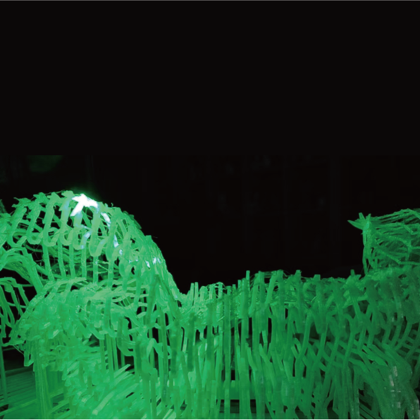以丝绸之路上举世闻名的“马踏飞燕”为主题创作的激光装置艺术,利用激光装置、机械传动设备、三维打印技术结合动画艺术创作的新媒体艺术装置。