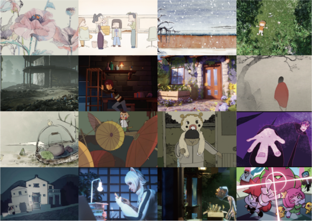 展项集合了中国传媒大学、四川大学、上海视觉艺术学院、日本多摩美术大学、北京舞蹈学院、湘潭大学、怀化学院等国内外多所高校的青年动画艺术家们的作品