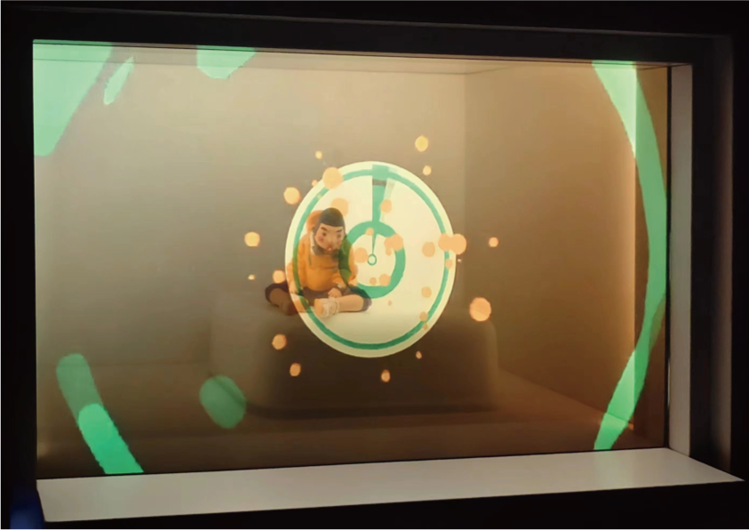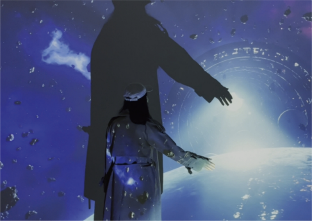 如果有一天,人类社会所构筑的精神图腾、文化符号等等,这一切都消弭于宇宙虚空。那么,万物更替,文明迭代,在未来超感的时空中,世界将会是怎样的面貌?作品将多个插画元素,分层投影,并配合动态视效,将这些抽象的,言语难以表明的观念,用一种可感知、可控制、可交互的方式呈现出来。利用数字媒体的优势引导观众进入这一谜题的探索中。