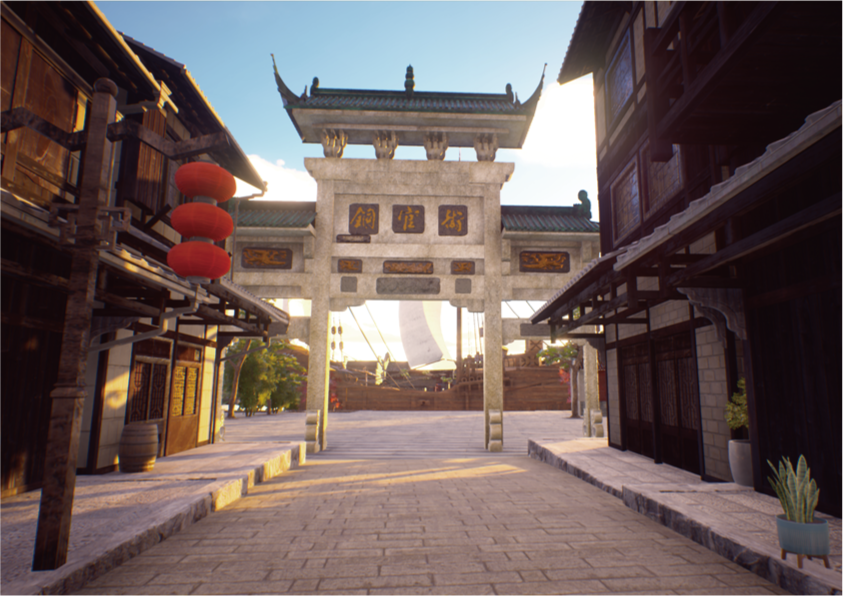 作品依托“景观基因理论”来建构铜官古镇元宇宙空间,运用数字化技术促成“文化与旅游深度融合”,最终实现铜官古镇 VR云旅游。