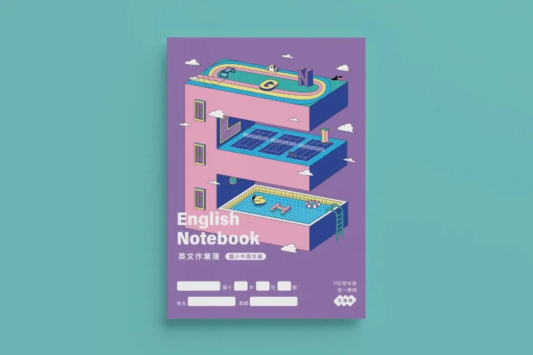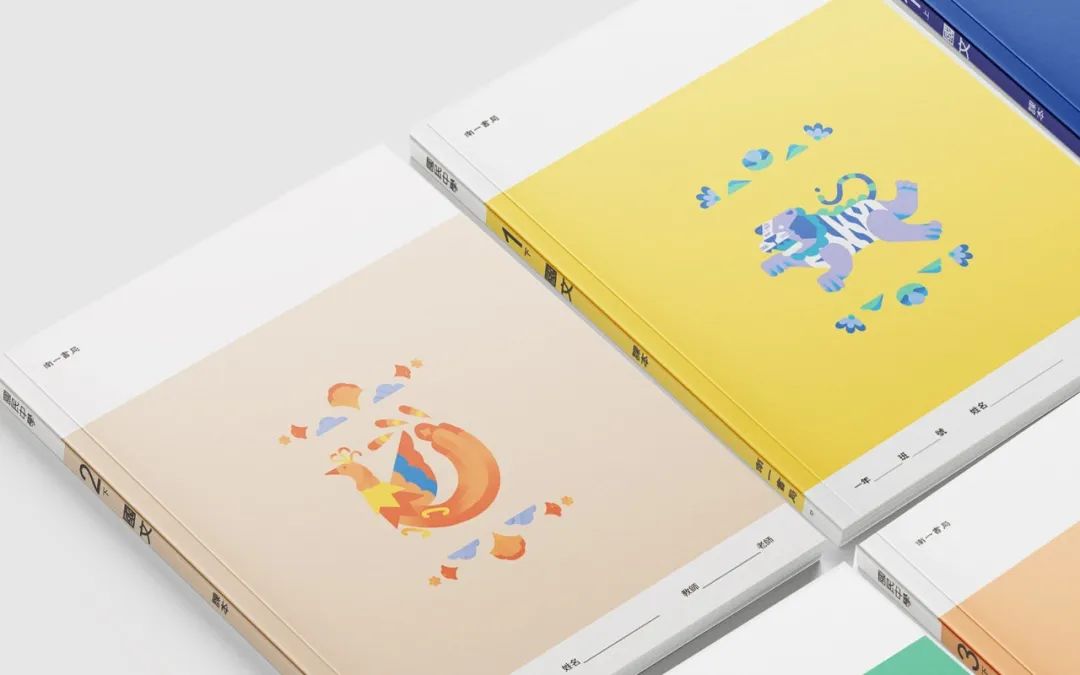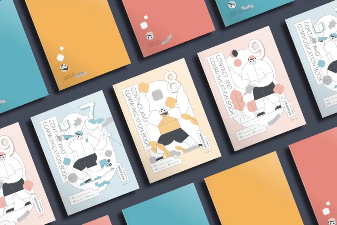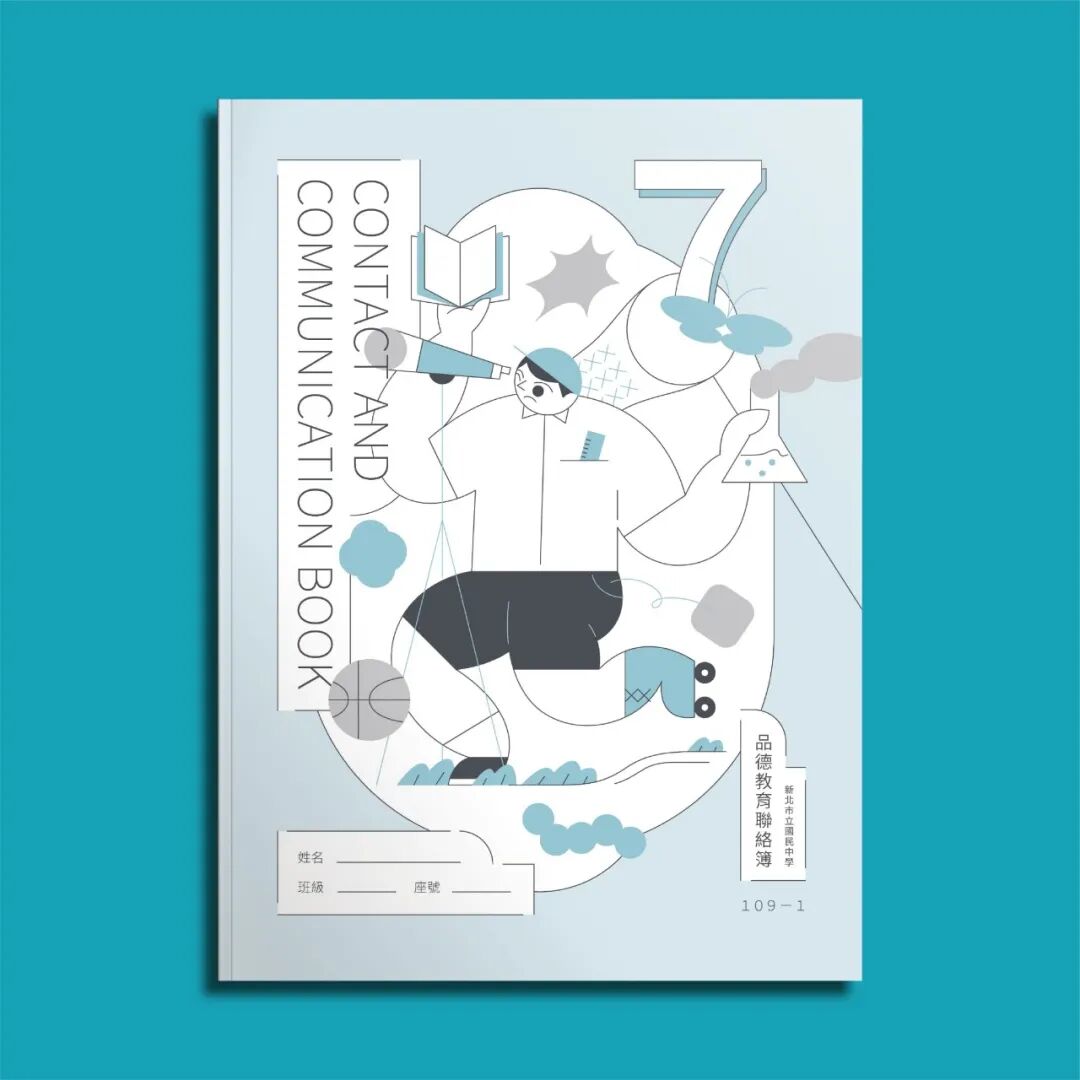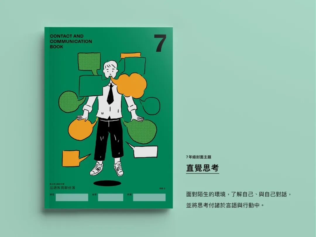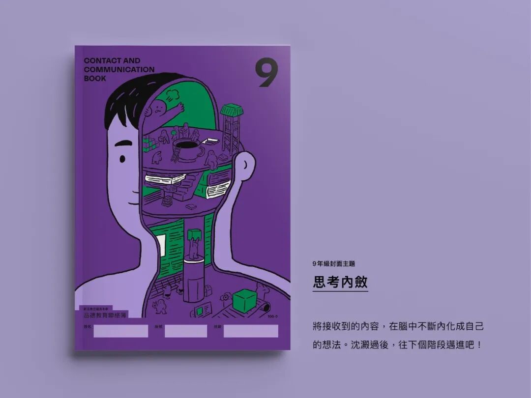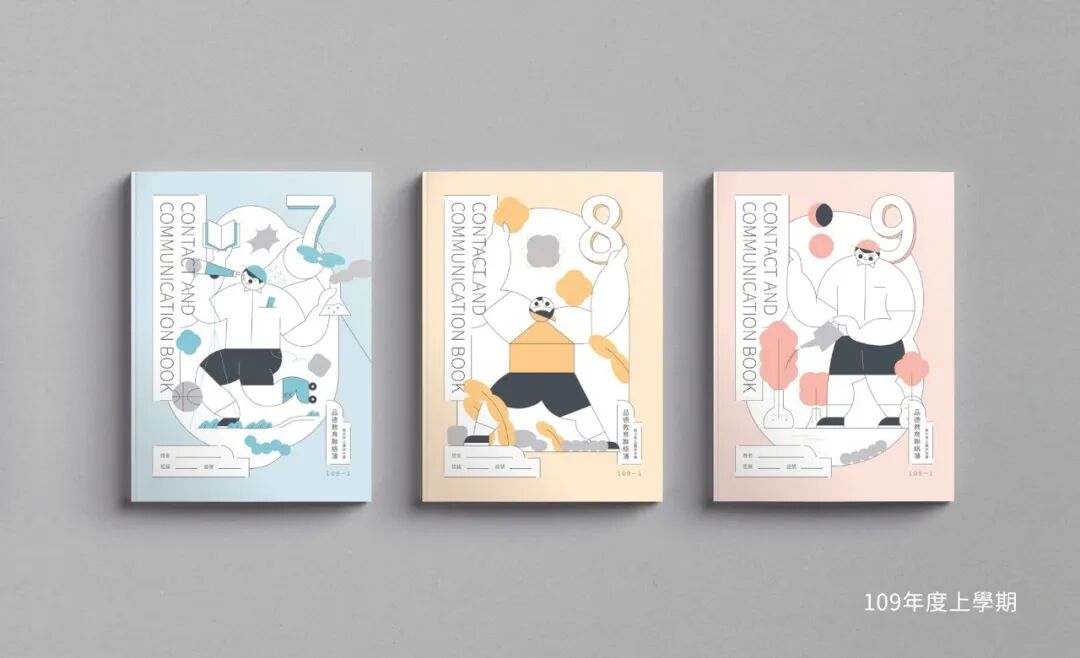 六册课本封面一字排开,可以发现每一册的视觉都能拼接在一起,宛如卷轴一般水平延伸,象征学无止尽。