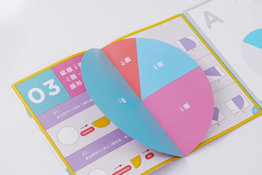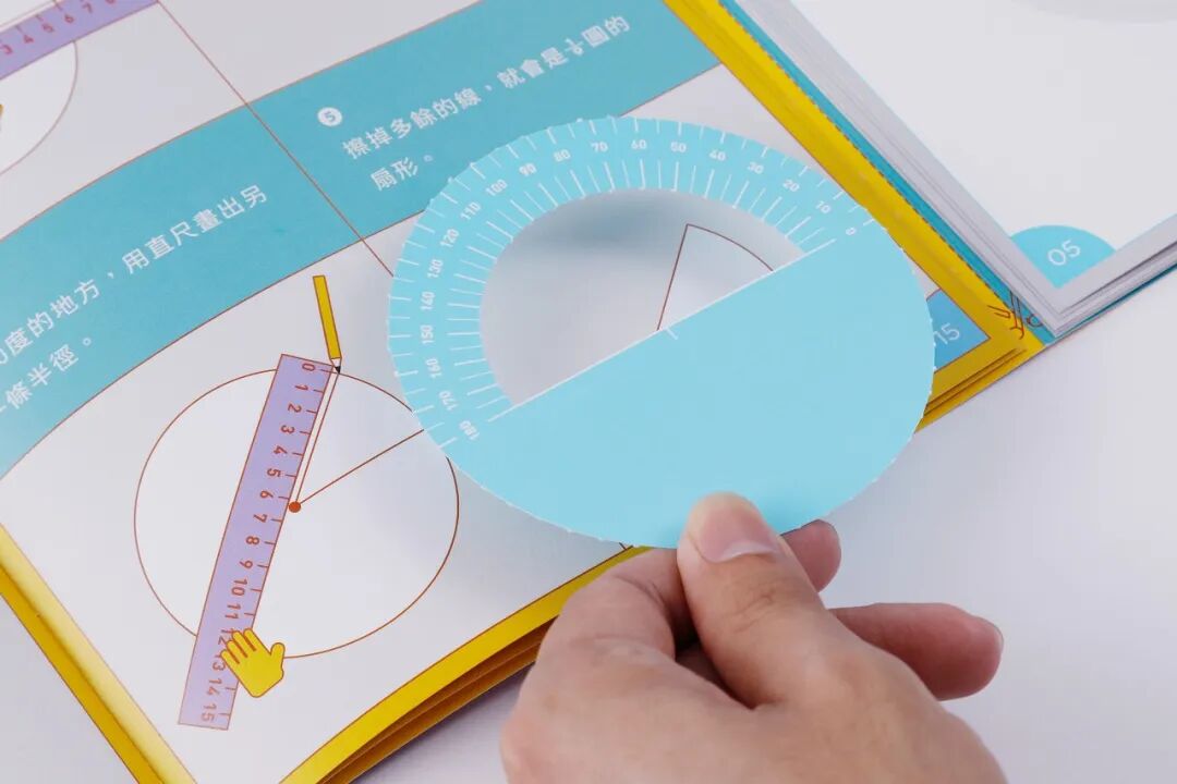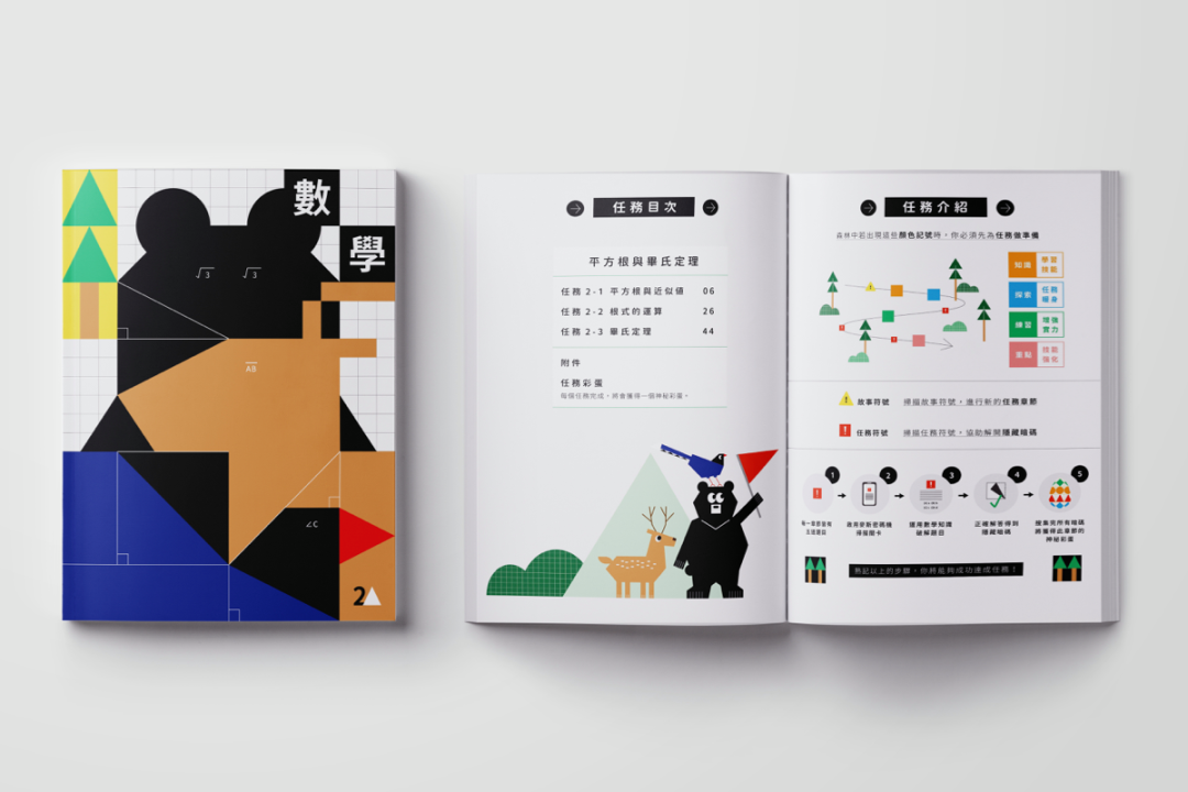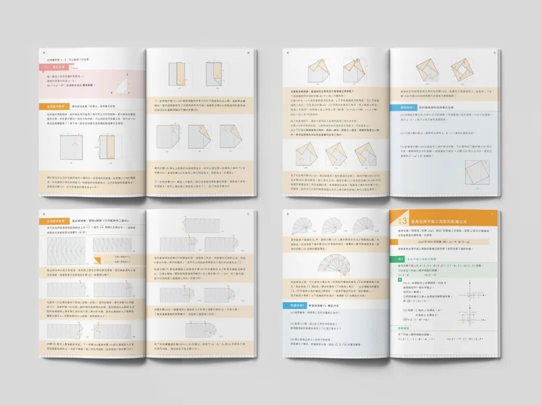 国中三年级的数学学习重点在「圆的性质」、「三角形的内心、外心与重心」,设计师将圆形和三角形融入封面设计,三角形看似被圆形包围,但也可以想像成,以三角形重心为圆心所画成的圆。