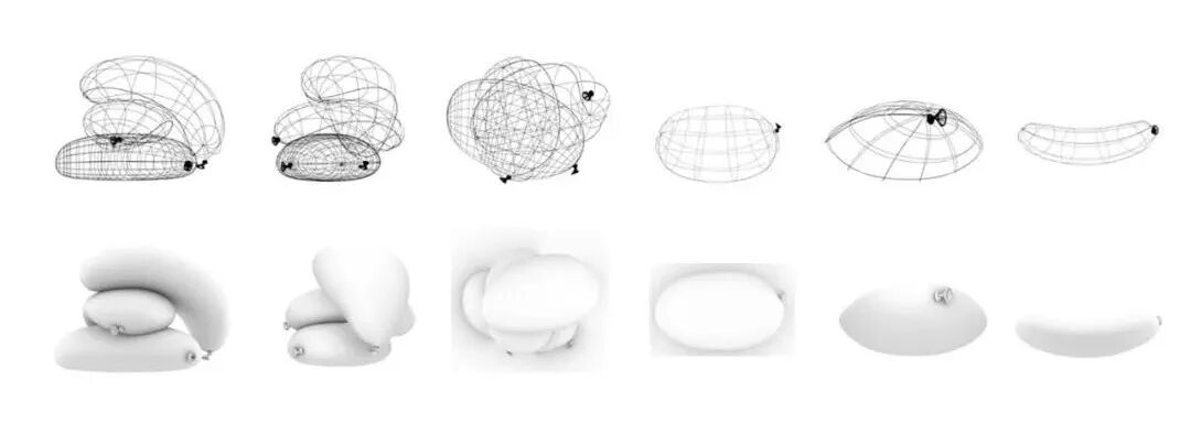 以若干气球为载体,将原本飘扬向上的姿态变成“躺平”状,耷拉着、挂着、爬着……他好像很懒、他似乎emo、他仿佛也在移动……
