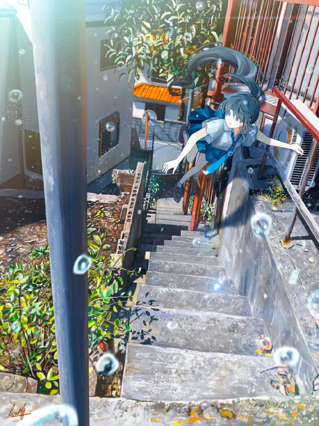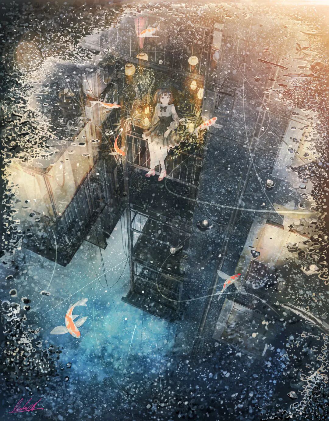 插画师banishment笔下的作品总是给人空灵而又宁静的感觉,美妙的光影像是梦中的场景,让人分不清是照片还是画出来的风景了。清透明亮的光影,绝美的色彩,真的是还原了动漫里的清新治愈。