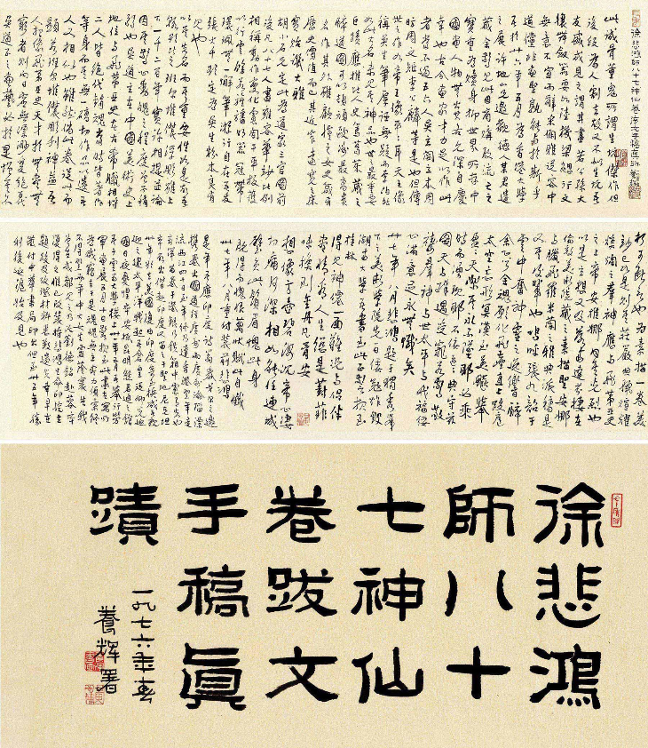 得到了世间如此少有的珍宝,激动万分的徐悲鸿日夜揣摩这幅意境缥缈的画卷,还精心刻制了一方“悲鸿生命”的印章钤在其上,随身携带,不离其身。