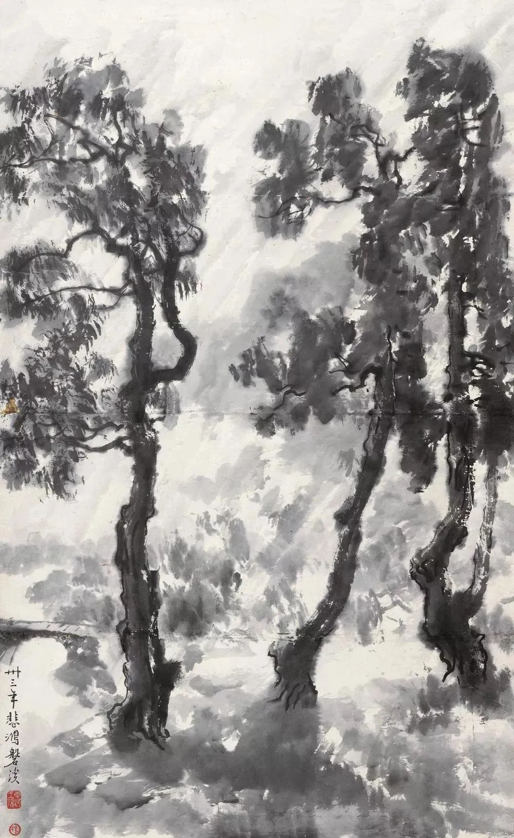 但徐悲鸿不喜欢一味摹古,对照他有限的山水画作,可以看到在他的作品中都努力追求着写实精神,从而树立了独自风格的山水。