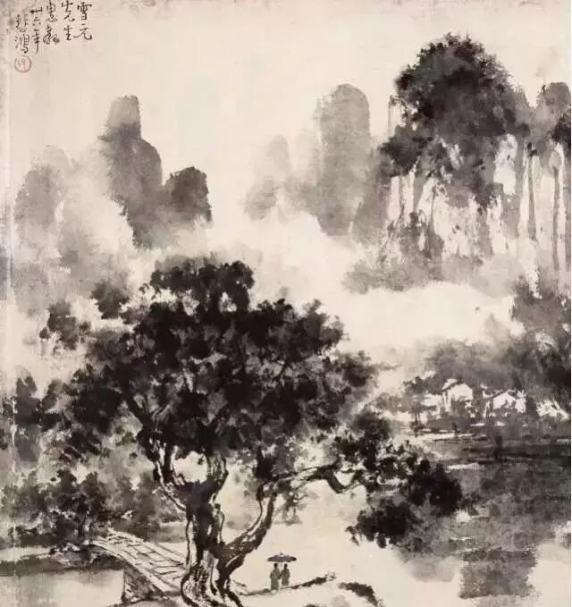 徐悲鸿的山水画为数并不多,但师法传统,尊重传统精神。