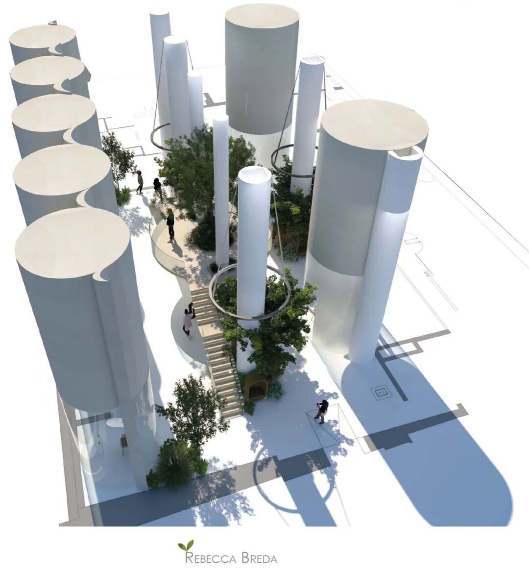 “这个研究生项目是关于在伦敦马兰戈尼校园大楼内为有社交焦虑症的大学生创造一个安全的空间和室内花园。