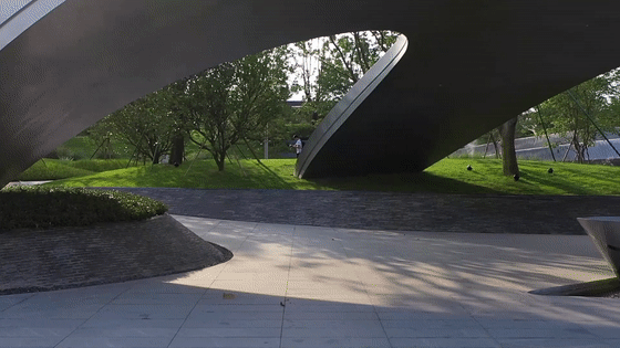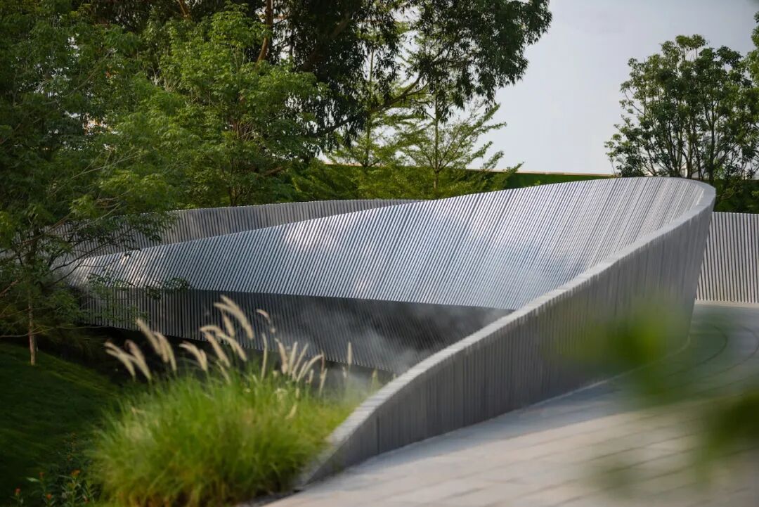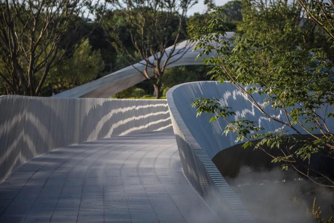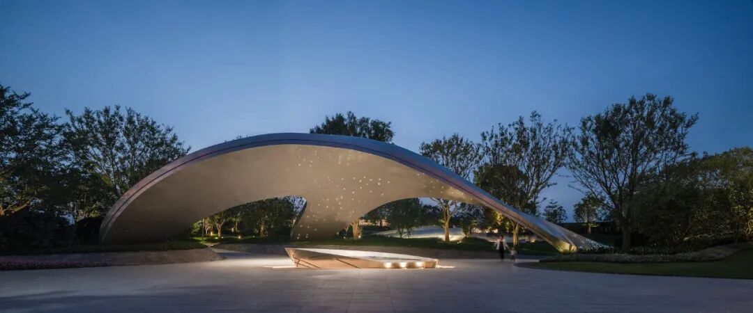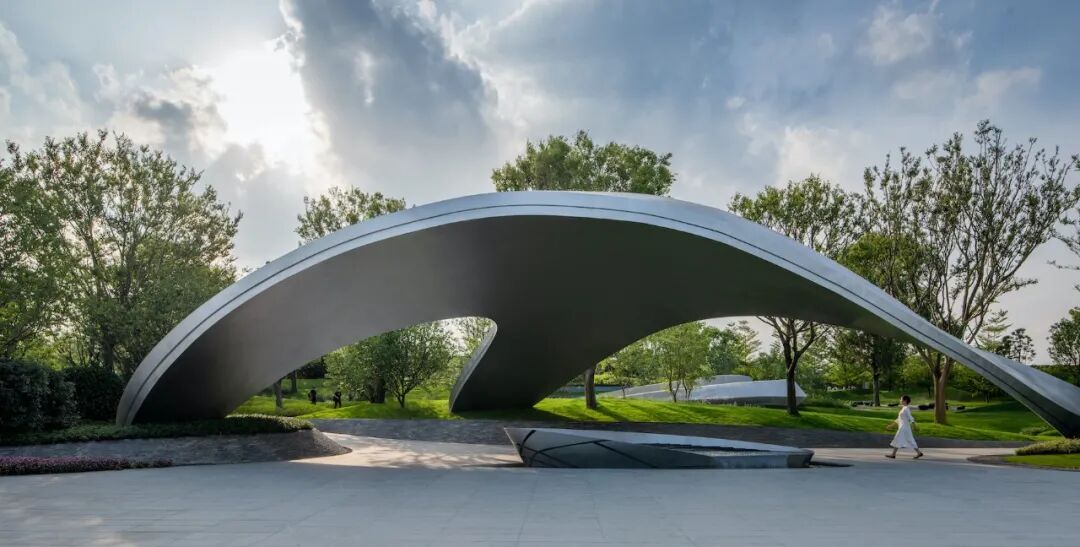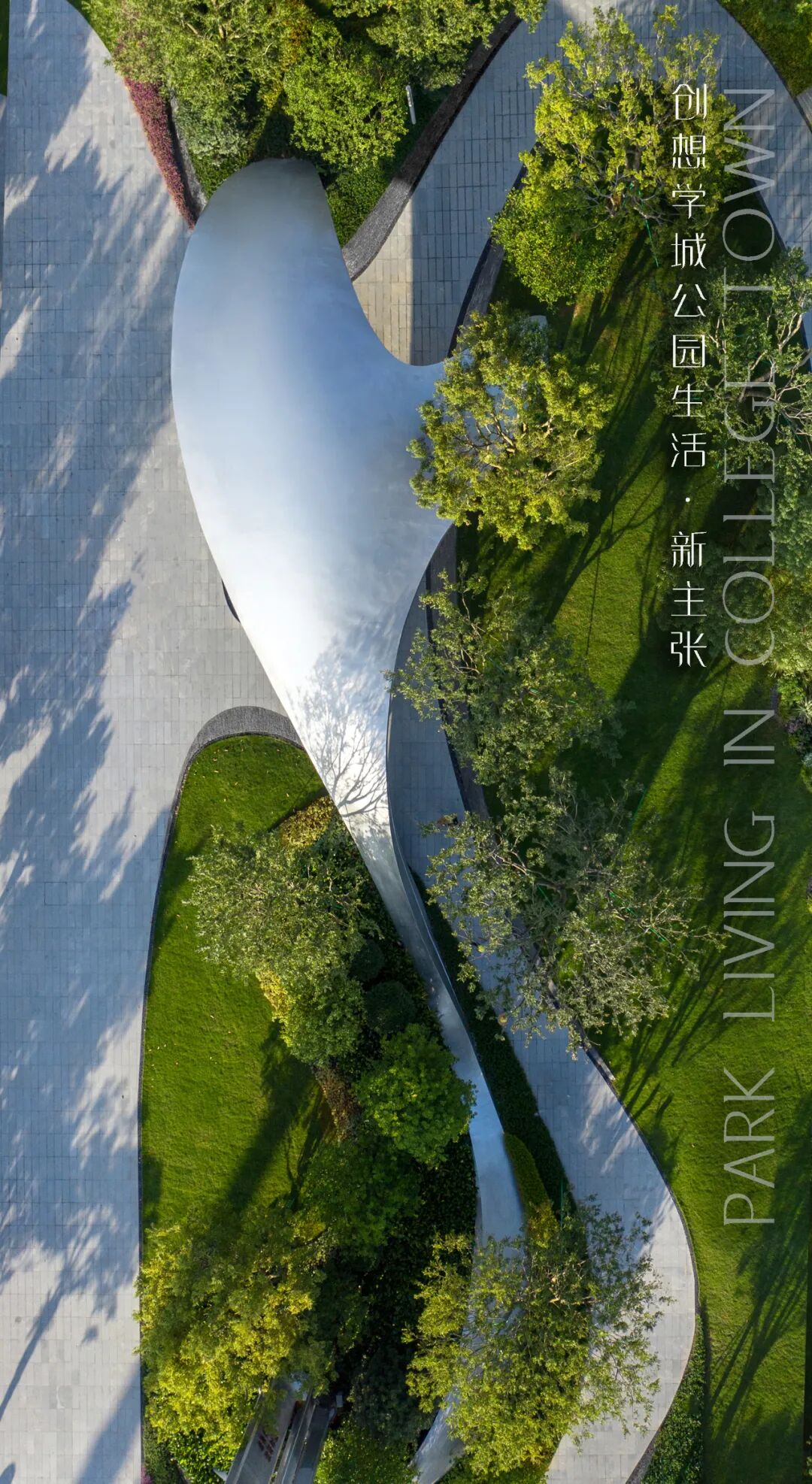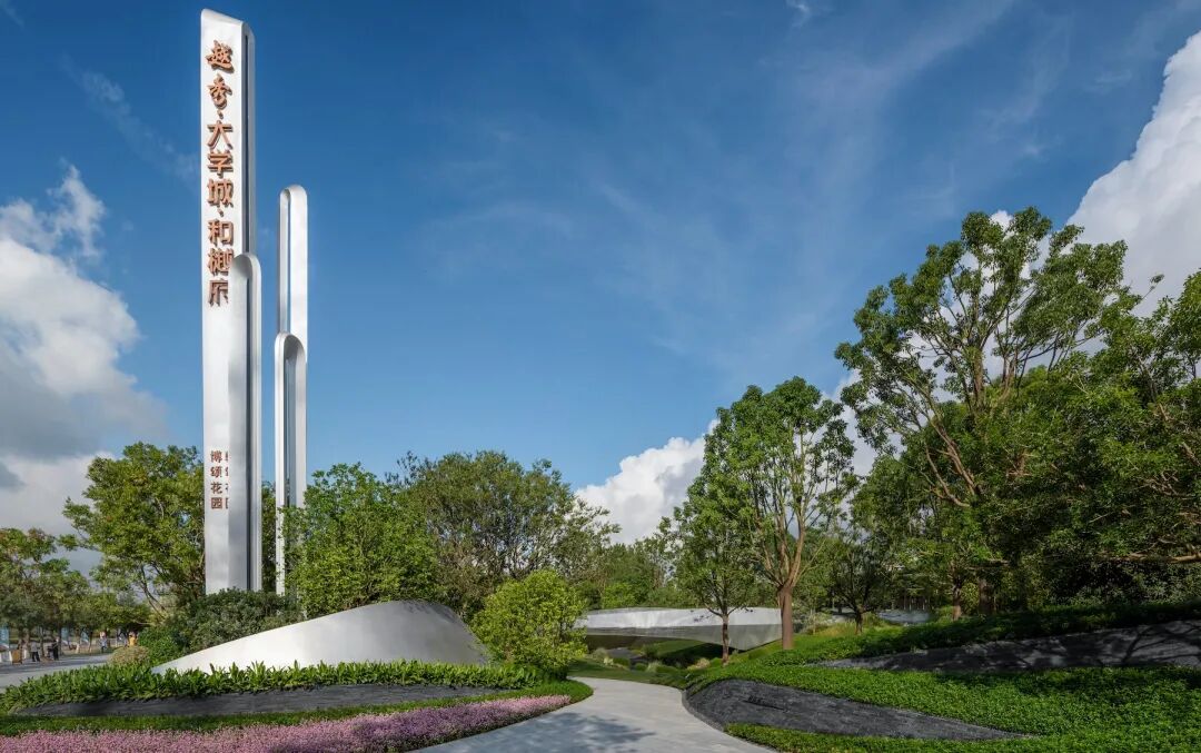 跃升、向上——归家入口的艺术形态延伸至大地,环抱来自学城、社区的生气,将涌动之势弥漫至园中每一处,携浪漫怀想启程新生活。