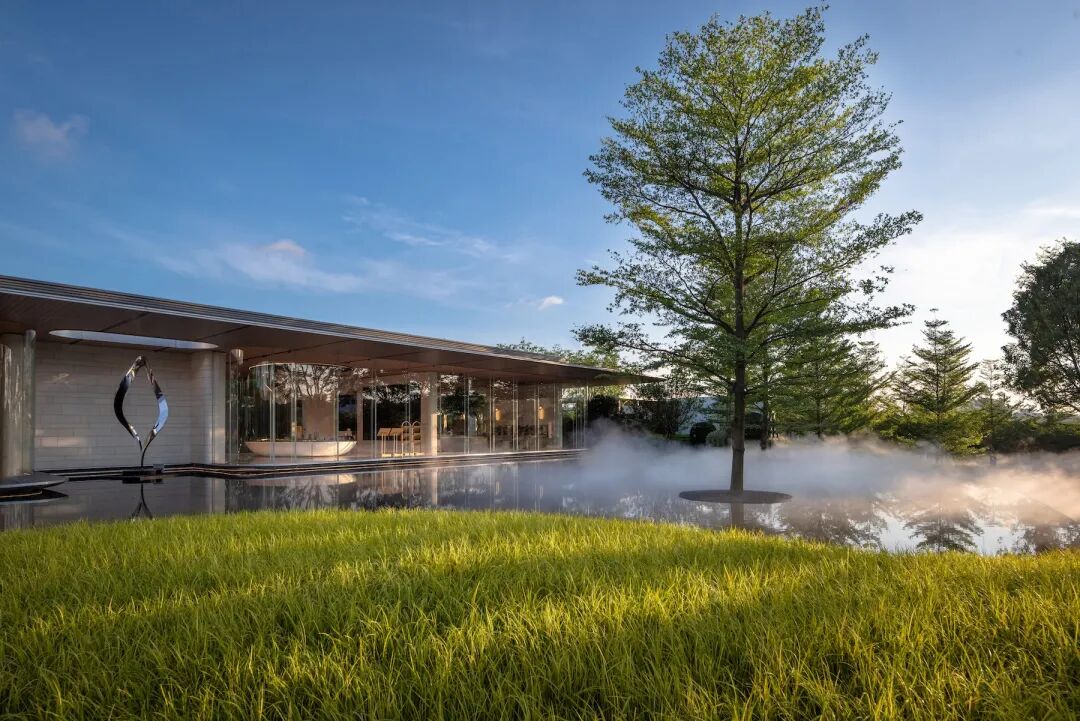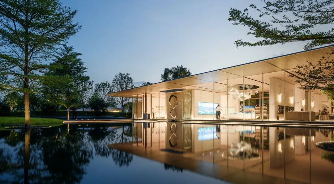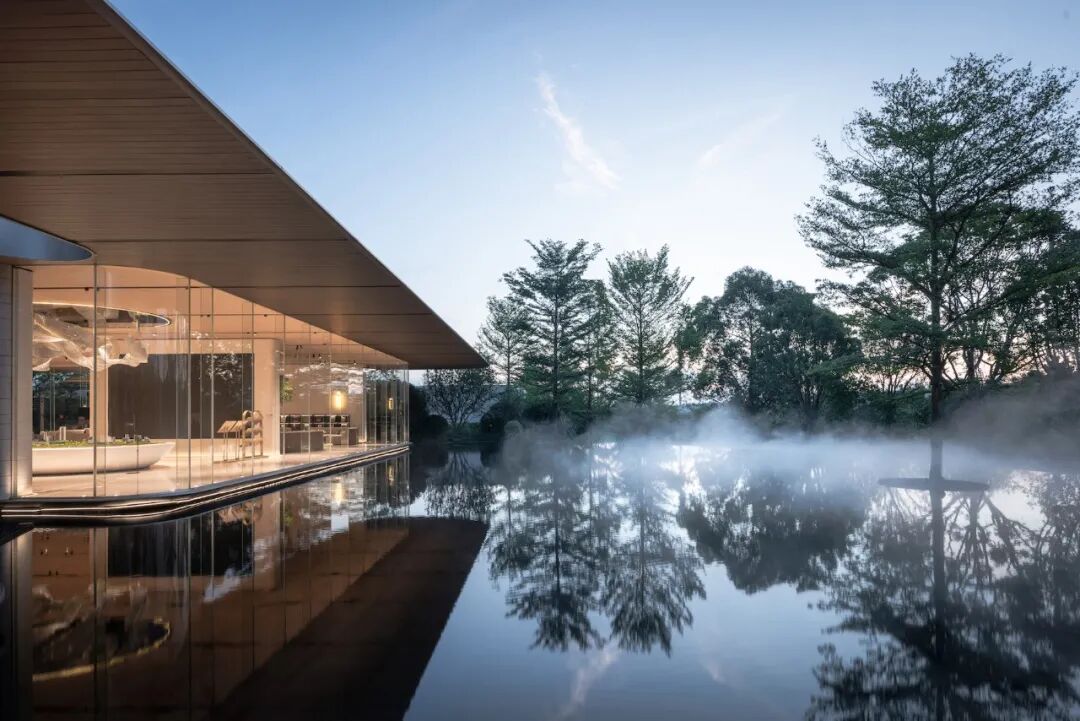 烟波缭绕处,静水载起预想未来的生活场景。宁谧的自然与轻盈的建筑和谐交织渗透,周边包裹着来自公园的丰富生活,每一面都各具风采。