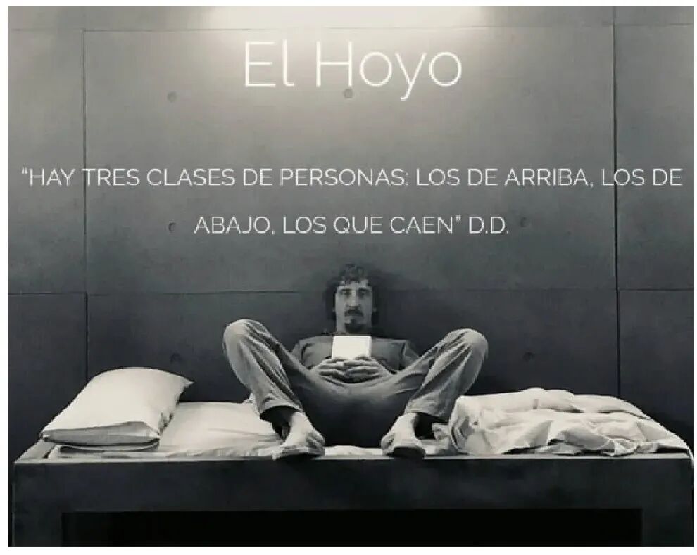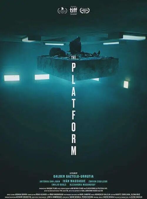 在监狱中,有一座自上而下运送食物的站台,只有建筑上层的人才能享用到精致完整的美味,越往下,食物越少,越肮脏。