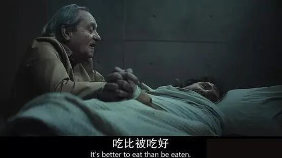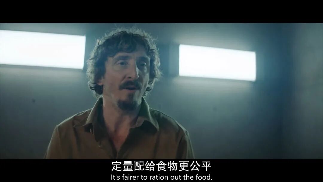 层层的楼层象征了层层阶级,享受特权的人——能够先吃饭的人,向下层的人传递恶意。在恶意与憎恶中,资源的匮乏摧毁了整个监狱的分配平衡。