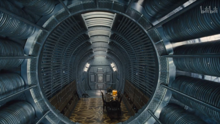 因此在《雪国列车》中,导演利用厚重的大门强化了每个列车之间的分隔,强化水平向的间隔次序感,让观众更直观感受到每个车厢的差异,使得柯蒂斯的起义更像是一种闯关