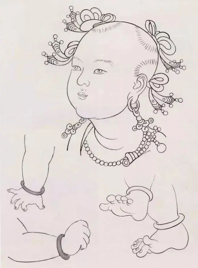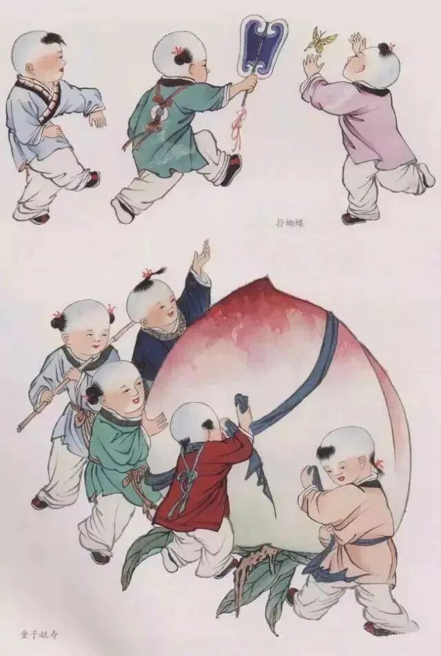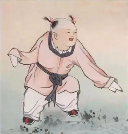 在中国古代绘画中,婴孩类题材被称为婴戏图,表达了一种祝愿国运昌盛、家庭幸福、多子多福的吉祥寓意。婴孩的身体往往刻画得有些变异,顽皮可爱,只求神似。