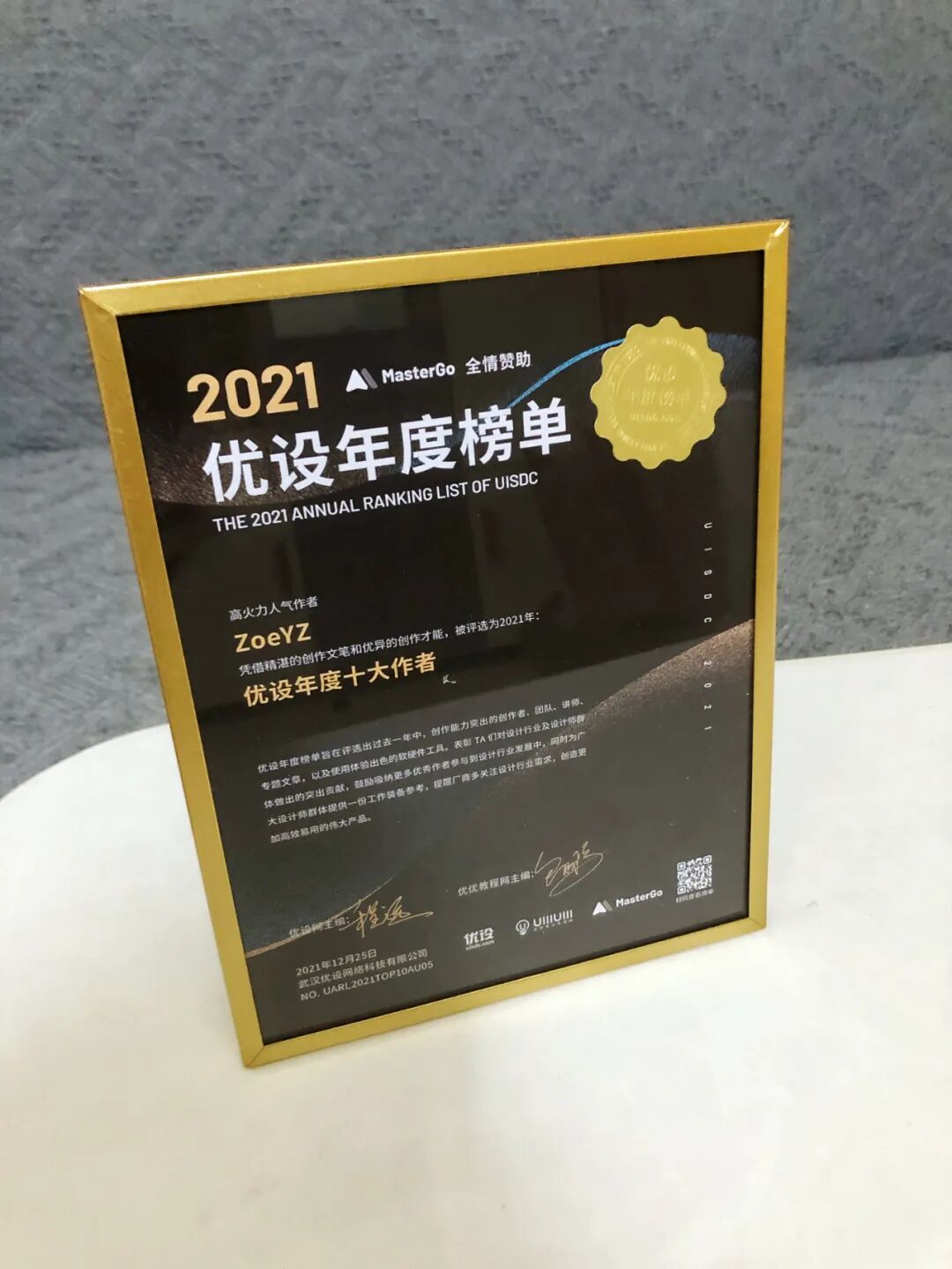 最后,我获得了 2021 优设年度十大作者,感谢一下优设平台和读者们,接下来也会再接再厉,请大家继续关注!