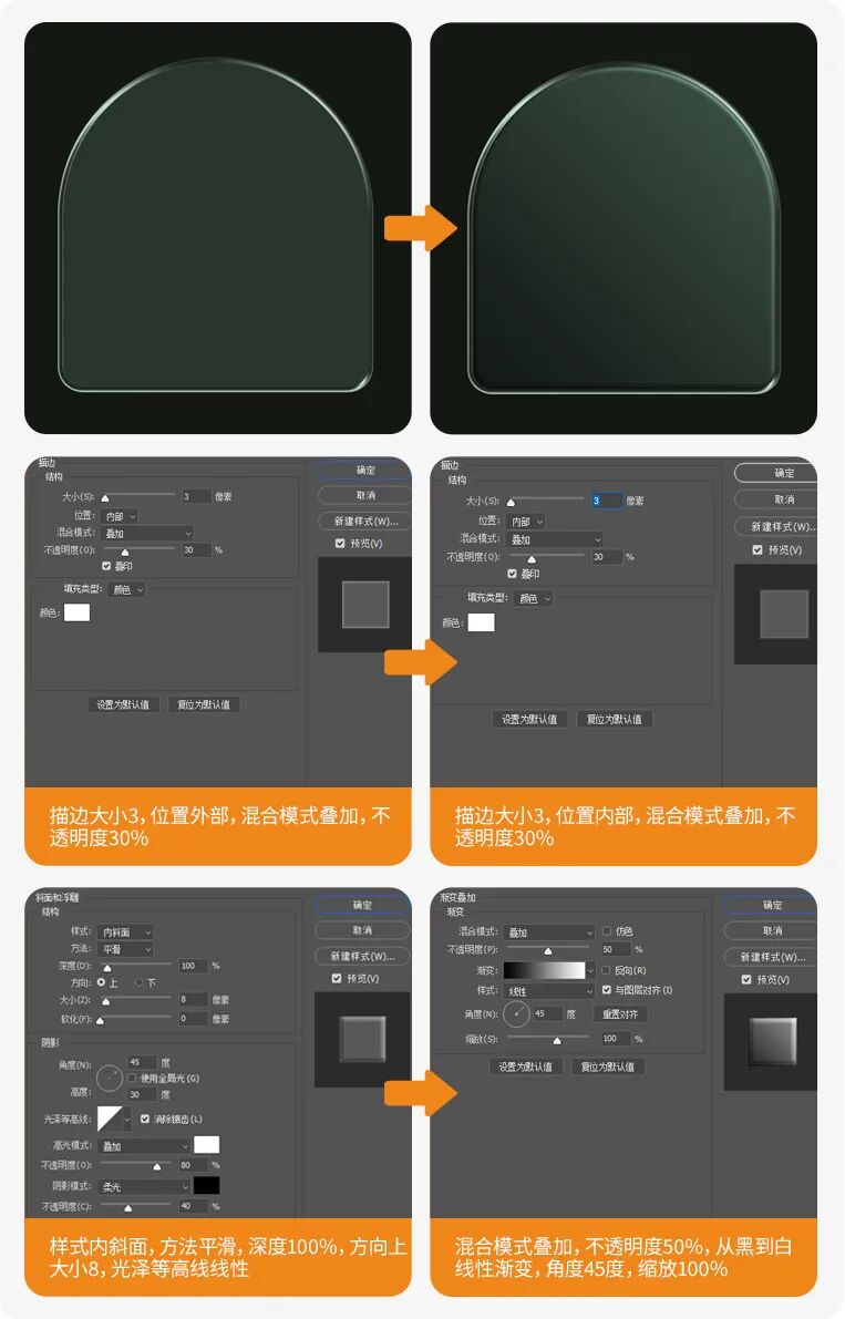 07.绘制下方矩形,双击添加图层样式-斜面浮雕-描边-内阴影
