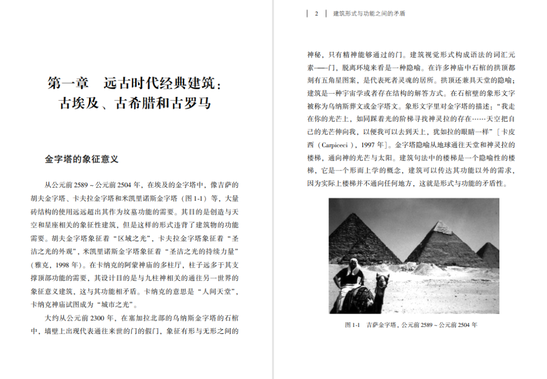 形式与功能的矛盾性应该被视为建筑中的一个重要元素。在建筑学历史体系中, 形式与功能的矛盾性并没有理论化, 并没有系统地阐述建筑实践中所蕴含的历史哲学理论。“形式” 是指建筑物的视觉外观 (线条、 轮廓、 形状、 构成);“功能” 是指建筑结构和功能要求 (结构、 居住、 计划、 组织、 使 用、 占地、 材料、 社会用途)。可以说形式是表示或表达功能的一种 形而上的方式, 但也不能完全这样认为。两者关系的现代内涵犹如 名言 “形式追随功能” 所说, 两者在建筑史中都起到重要的作用。