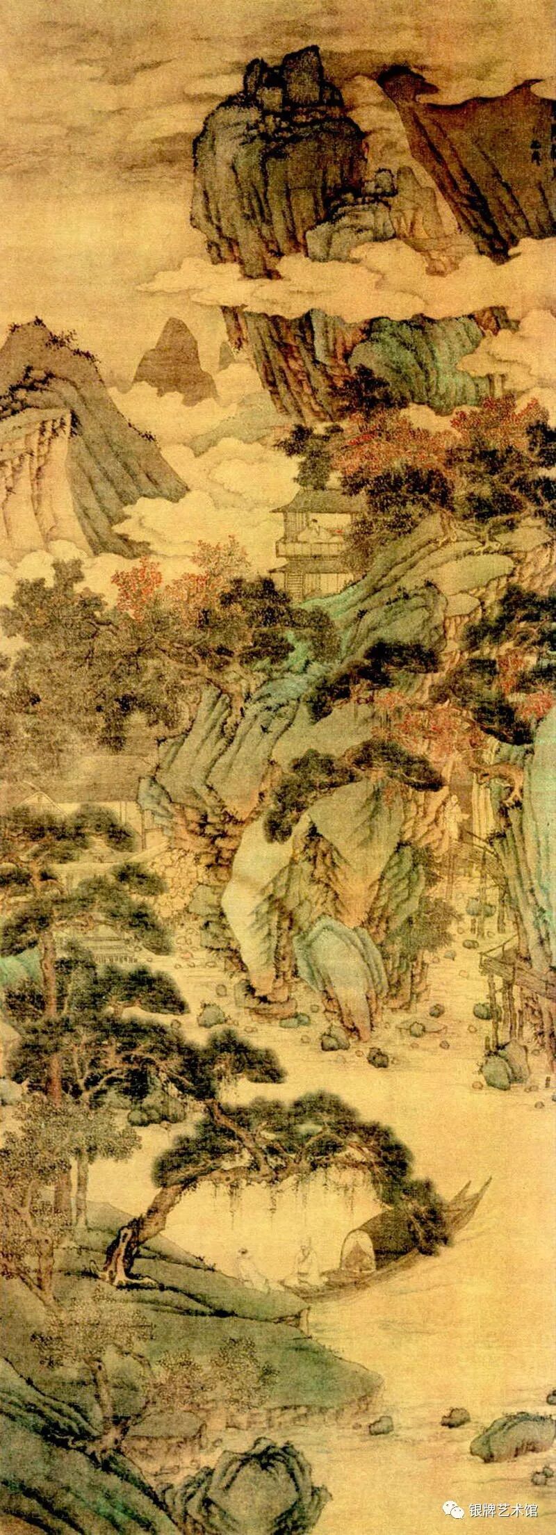 《雪际停舟图》是沈周山水画中赋色比较重的一幅,是他水墨浅绛画的典范,还穿插运用了青绿山水画的表现技法。
