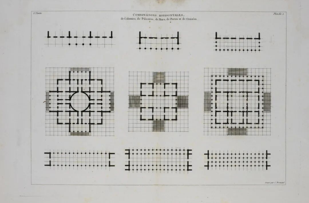 人们很早就发现了帕拉第奥对比例的处理特别成功。夏尔- 艾蒂安·布里瑟(Charles-Etienne Briseux)在他1752年的《论艺术的本质之美》(Traité du Beau Essentiel Dans Les Arts)里就对帕拉第奥的建筑青眼有加,因为他的建筑具有“一目了然(d’un coup d’oeil)”的优美比例。布里瑟以一句格言“经验之证(Preuve Par L’expérience)”来高度评价帕拉第奥的立面。这距离“网格设计规则(Grid Construction Rules)”仅一步之遥,迪朗的著作已体现了这一规则。而到了1990年,麻省理工学院的威廉·米切尔(William J. Mitchell)首次实现了计算机调控,这一工作获益于操作简单的几何规则性(Geometrische Regularität)。在此之前,曾有一场讨论以一种很特别的方式证明了帕拉第奥的建筑与现代模度设计方法(Modulare Methoden des Entwurfs)的“适配性”。
