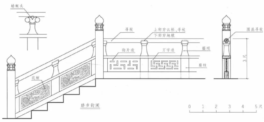 c)《营造法式》单钩阑做法