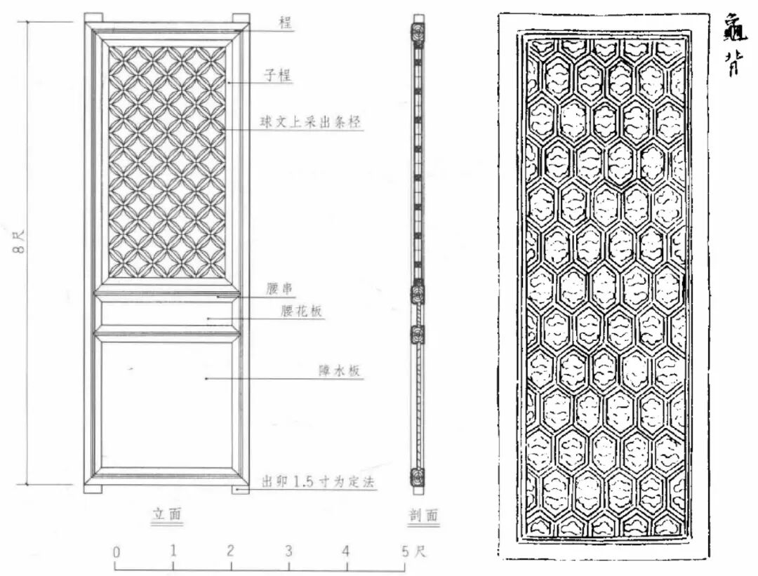 b)《营造法式》龟背文原书图样