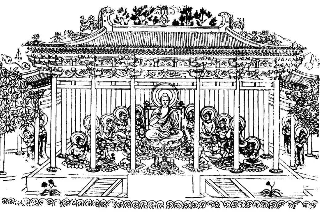 鉴于此,下文结合佛教经文和建筑学知识,分别从“场景塑造”与“建筑形制”两个方面,对该幅图像的建筑信息进行逐一辨识和解读。