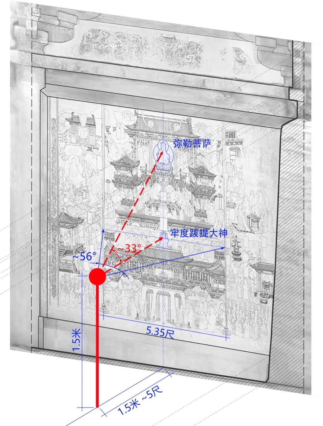 图17 开化寺大殿北壁东画面与观者视角的关系