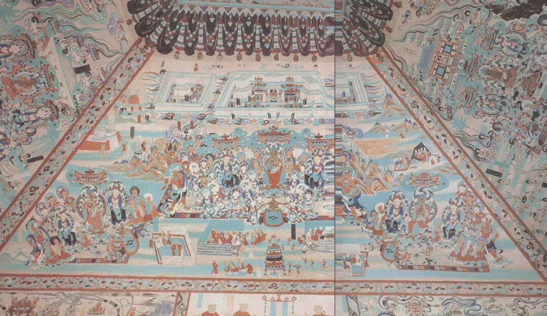 上生+ 下生经变(与华严经变同时绘于四坡顶)
