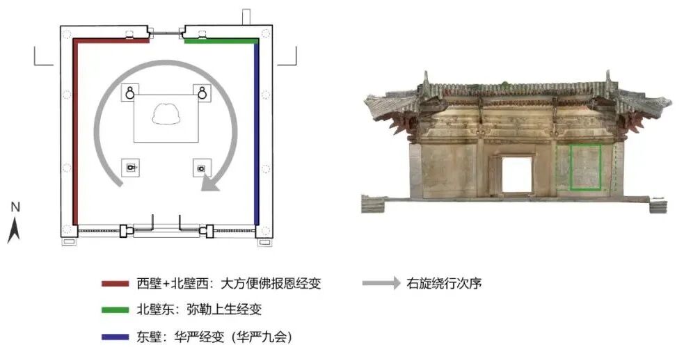 图15 开化寺大殿北壁东及东壁建筑格局复原示意图