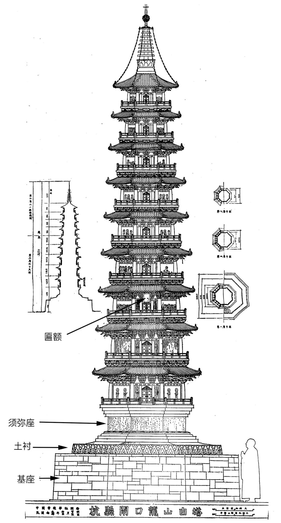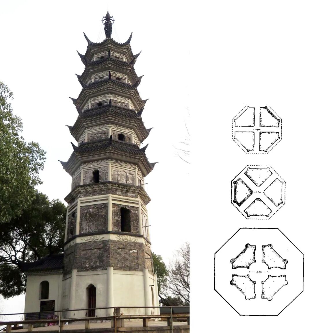 图12 苏州楞伽寺塔(978年)立面照片及最下三层平面图