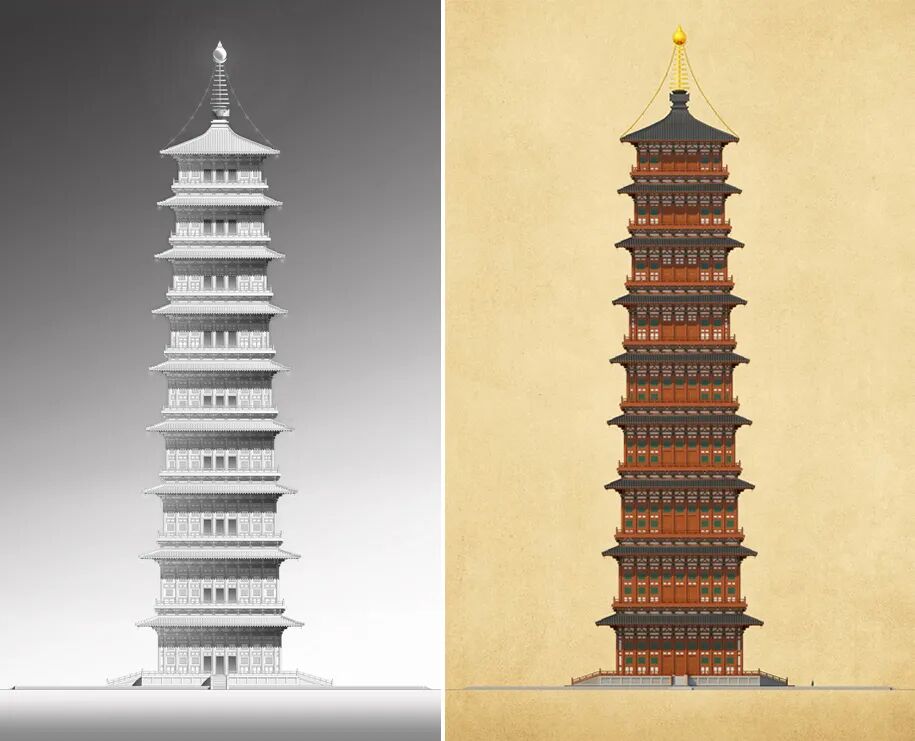 两位学者的论文不仅证实了永宁寺塔文献记载的高度可信性,也基于其建筑与结构逻辑,初步还原了塔各层平面、高度与构造,从而在整体上再现了这座古今木构第一塔的大致外观。