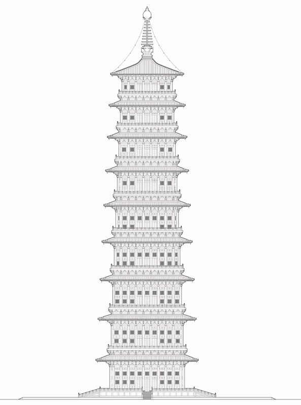 图17  以“九”为基数的永宁寺塔复原立面图