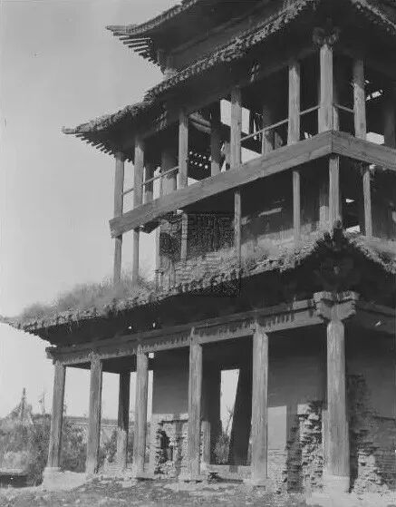 由于迎祥观及其钟楼的实物已不存在,因而对建筑形制的考证不得不依赖为数不多的历史影像与文字资料,包括:日本学者足立喜六于光绪三十二年至宣统二年期间(1906—1910)所摄影像(图9)与笔记,收录于《长安史迹研究》。法国汉学家沙畹于光绪三十三年(1907)所摄影像(图10),收录于《北中国考古图录》。日本历史学家桑原骘藏于光绪三十三年(1907)所写笔记,收录于《考史游记》。中华民国3年(1914)第5期《时事汇报》刊登的《关中游览记》。瑞典汉学家喜仁龙于中华民国10年(1921)所摄影像(图11)与笔记。