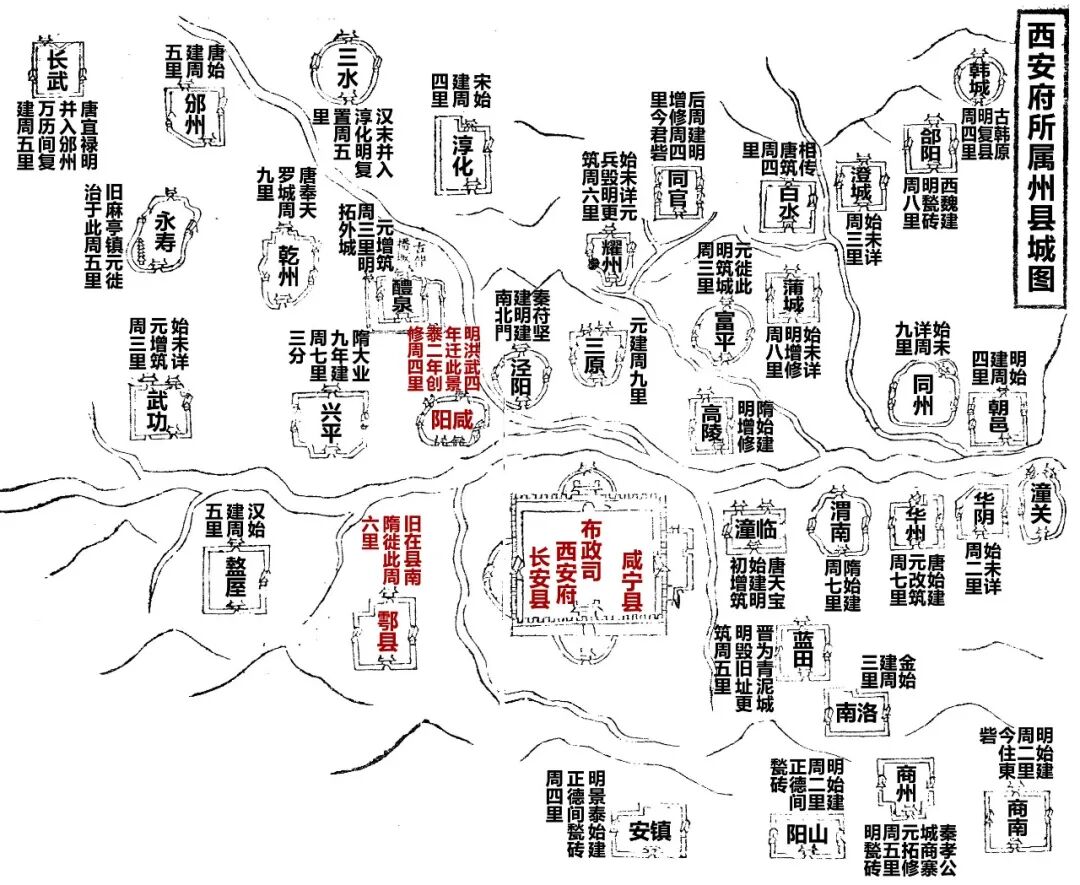 图1 康熙《陕西通志》“西安府所属州县城图”