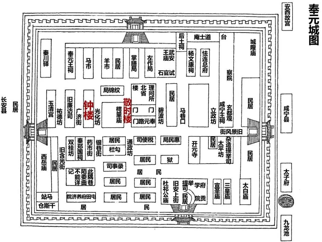 笔者尝试从风烟遮蔽中梳理元明清西安府钟楼群体(体系)的历史脉络,整理出9个主要事实要点: