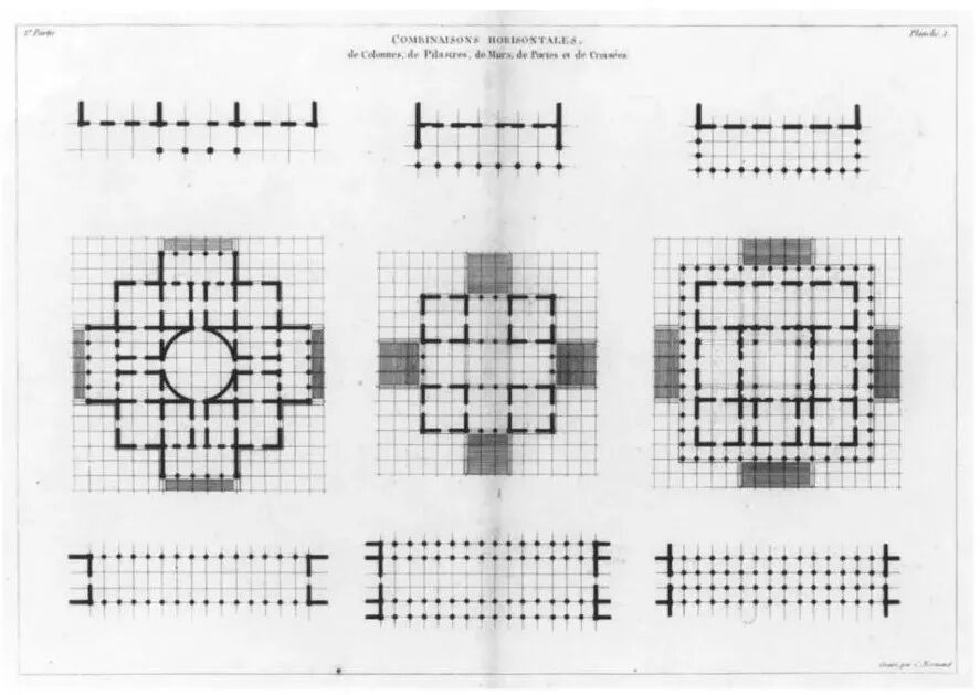 图3  迪朗在《概要》中引用圆厅别墅的图例进行教学策略分析