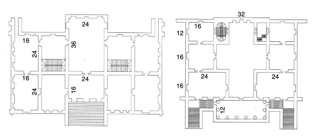 图8  戈迪波多別墅(左)和马康坦塔别墅(右)平面中的比例