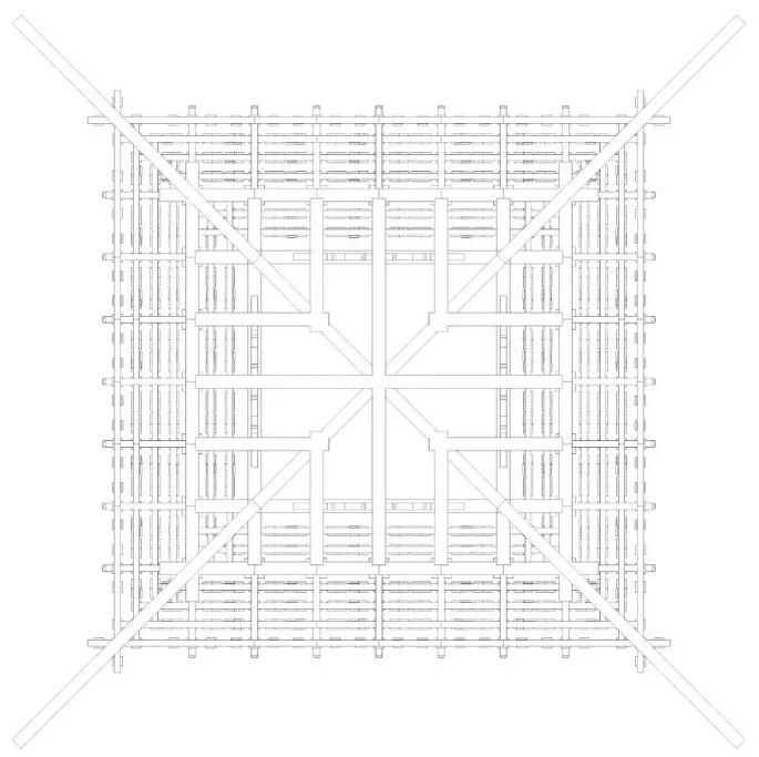 按照《营造法式》规定,亭榭使用六等材,即材广6寸、材厚4寸。标准攒档125份合宋尺5尺。