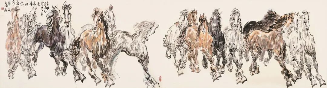 刘勃舒  群马  纸本设色  2018年  84×153cm