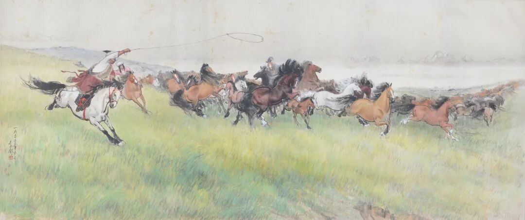 刘勃舒  套马  纸本设色  1955年  98×228cm