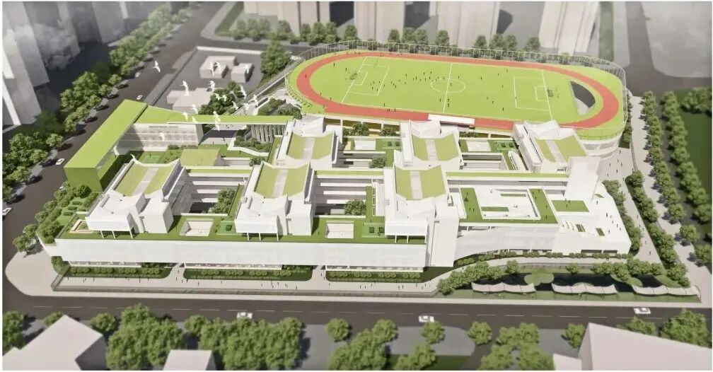 屋顶绿化和抬高的操场为周边高层住宅提供了远眺景观,居民足不出户,就可以看到富有生机与活力的景色。