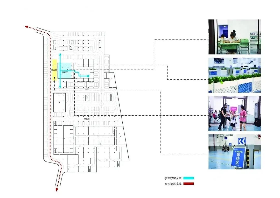 该方案让人眼前一亮的是,学校为家长预留了专门的接送通道和地下停车场,这些通道同图书馆直接相连,家长在接送孩子时可步行前往图书馆,享受“有尊严”的接送。