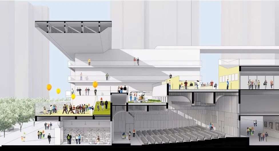 同时,方案利用半透明材质打造活动平台,将校园景观尽可能地呈现给城市,让城市与学校互为风景。